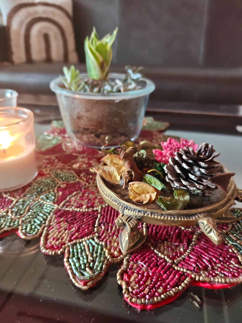 Lotus Pichwai Set of 2 Decorative Tray Big Tray 10 x10 inches & small Tray : 8 x8 inches Metal Pooja | Decor trays