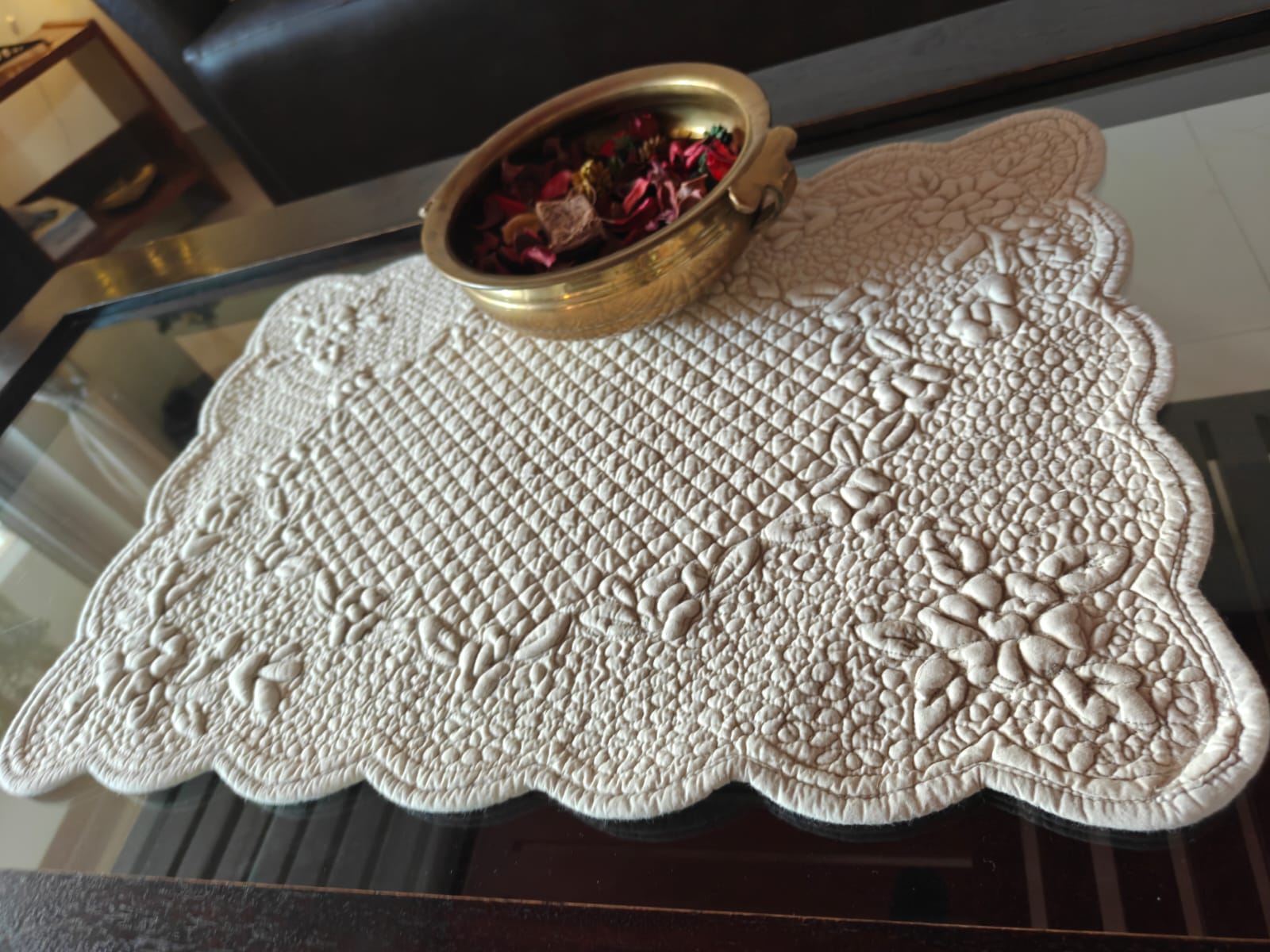 Beige Trapunto Quilted Cotton Rectangular Reversible Focal Table Placemat