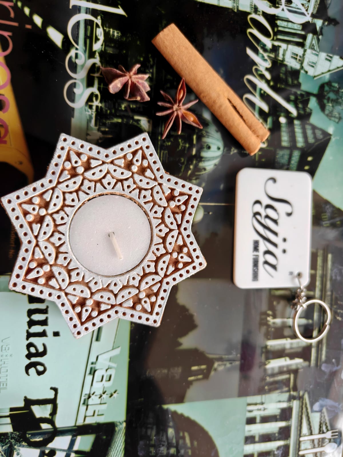 Handcrafted Ashtabhuja Star Wooden Tealight Candle | Handcrafted Diya | 1 piece | Indian Festival Diya