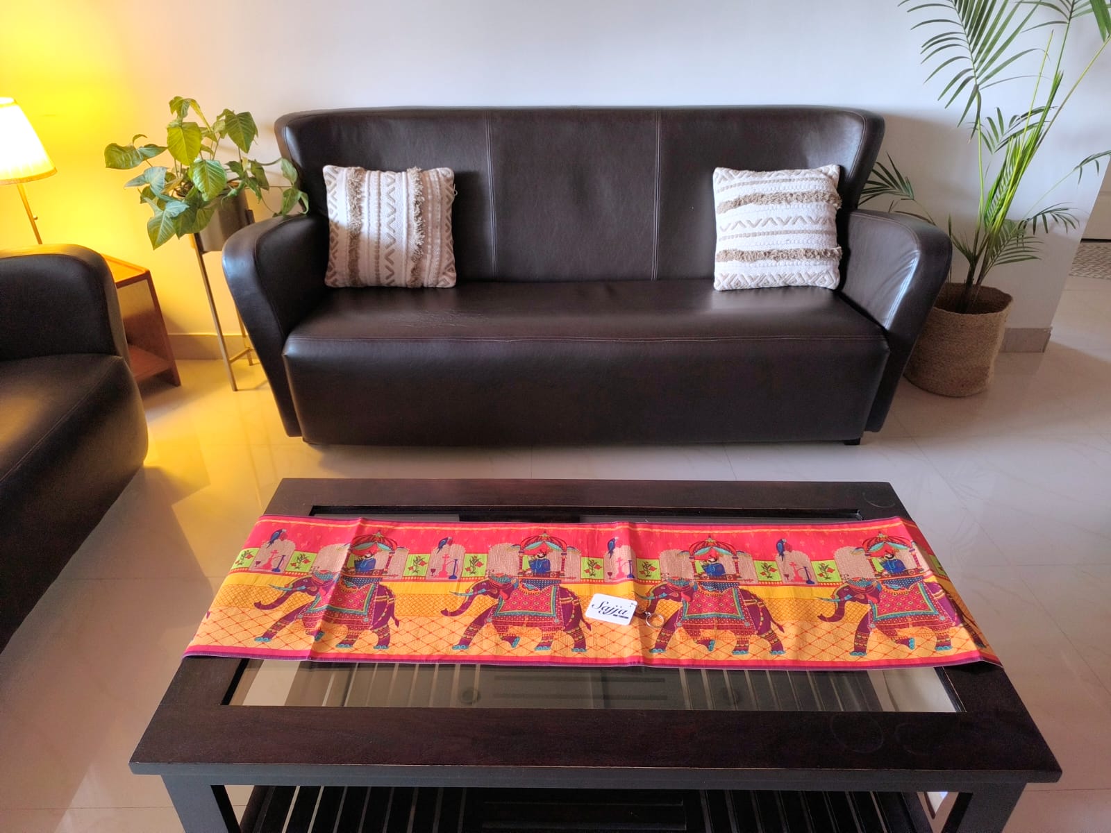 Phad Art Hatti Palki Dupion Silk Table Runner For Centre Table (L-48in, W-12in) | L- 4 feet